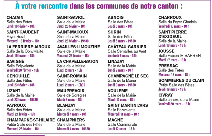 54 ans, conjointe collaboratrice, Maire de Joussé, Vice-Présidente de la Communauté de communes des Pays Civraisien et Charlois.