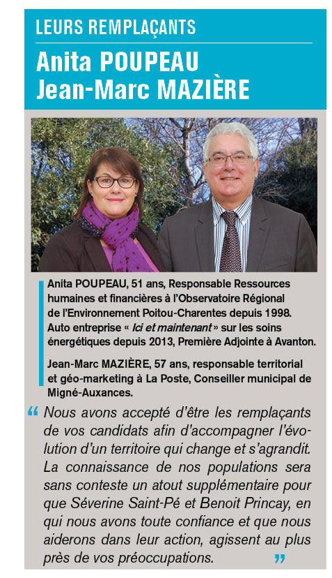 38 ans, Analyste financière secteur bancaire, Maire de Neuville de Poitou, Vice-Présidente de la Communauté de Communes du Neuvillois.